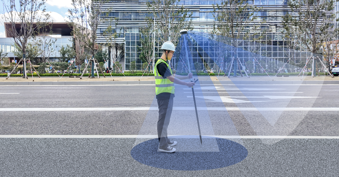 Using the front and bottom cameras at different distances, targets are marked onto the live view to quickly locate point positions and improve stakeout efficiency by 70%